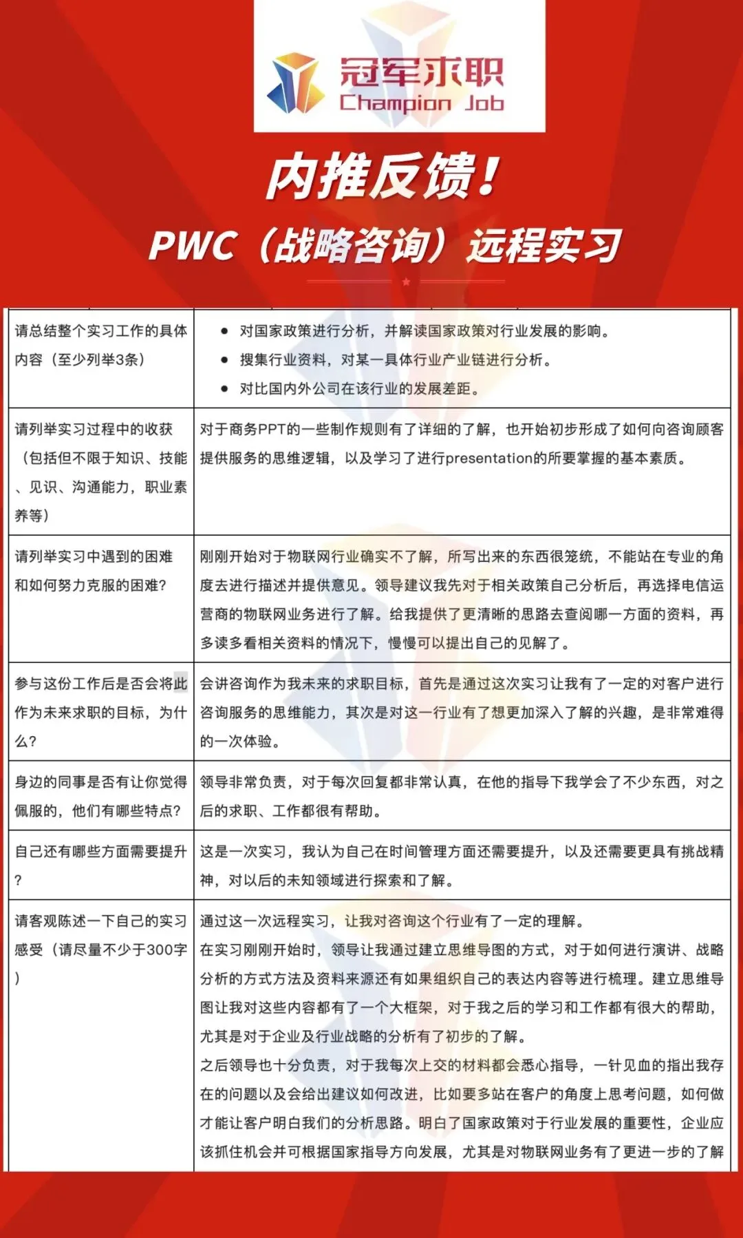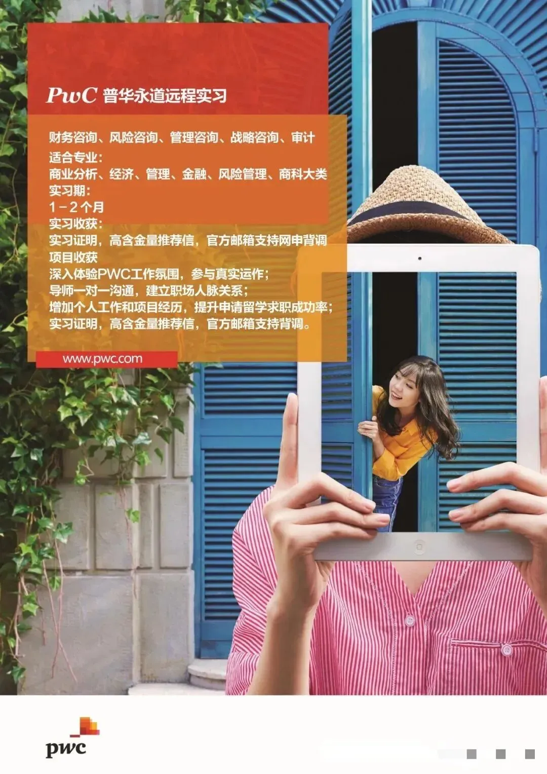 内推成功案例|PWC普华永道咨询(战略/管理/风险/财务)远程/实地实习