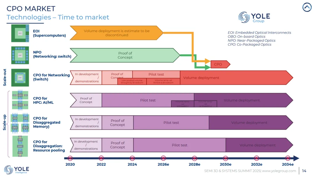 2020-2034年CPO市场规模预测(来源:Yole Group)
