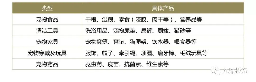 表1:宠物行业中游产品列表