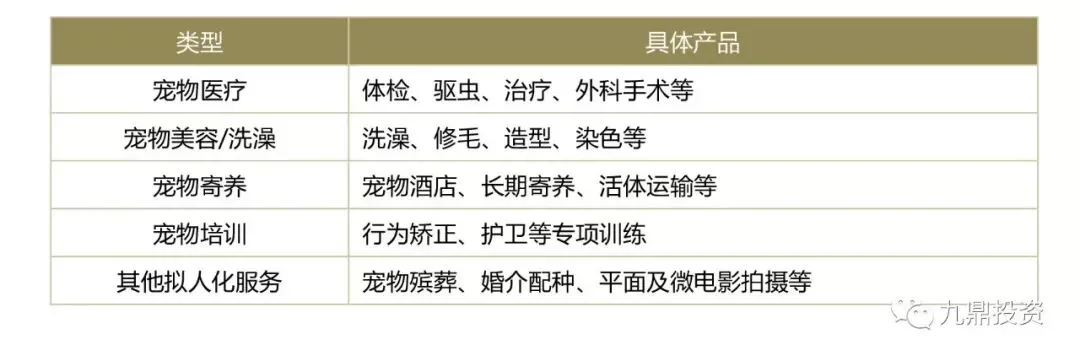表2:宠物行业下游产品列表