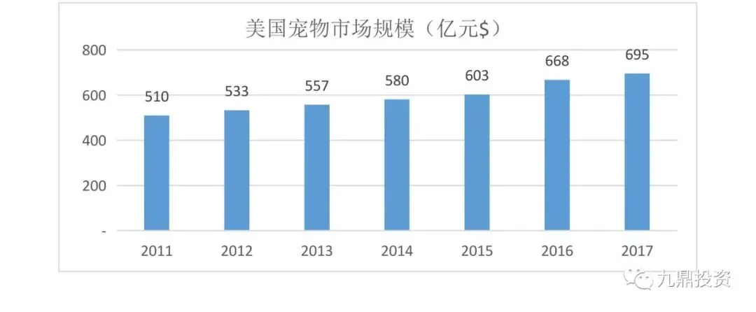 图7:美国宠物市场规模(亿美元)