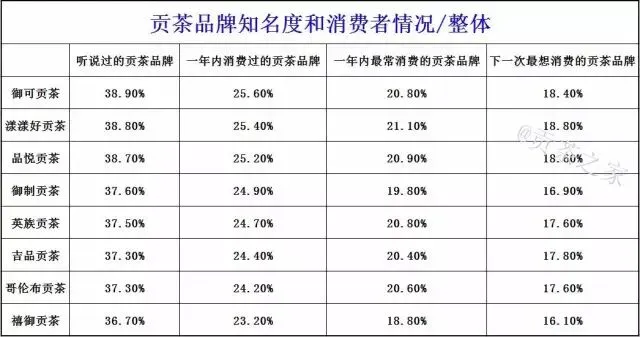 资料来源:请问您有没有听说过以下这些贡茶品牌呢?得出这样一组数据: