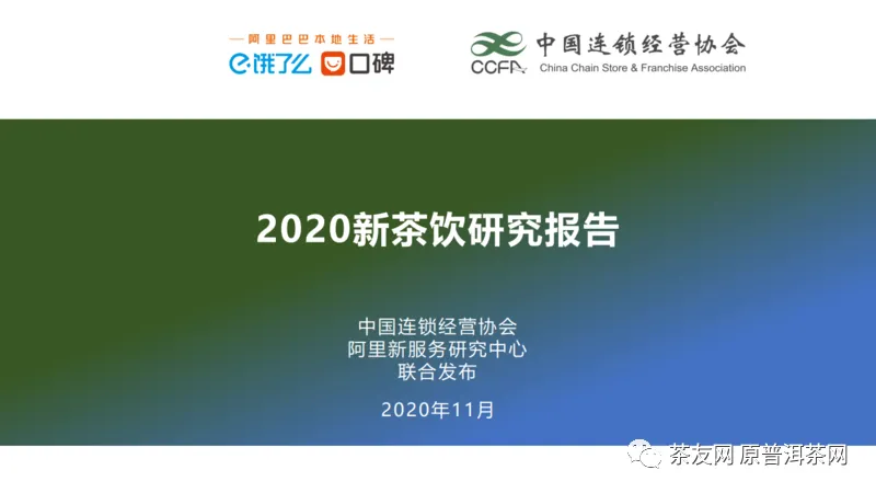在中国连锁经营协会(以下简称CCFA)主办的全零售大会上,CCFA联合阿里巴巴本地生活(饿了么)共同发布了《2020新茶饮研究报告》。报告以我国连锁茶饮发展入手,首次定义“新茶饮”这一行业通识性的概念,报告分为市场发展概况、消费者洞察、渠道端、产品端、品牌端和政策环境六部分内容,是对我国新茶饮企业的首次概览性研究。