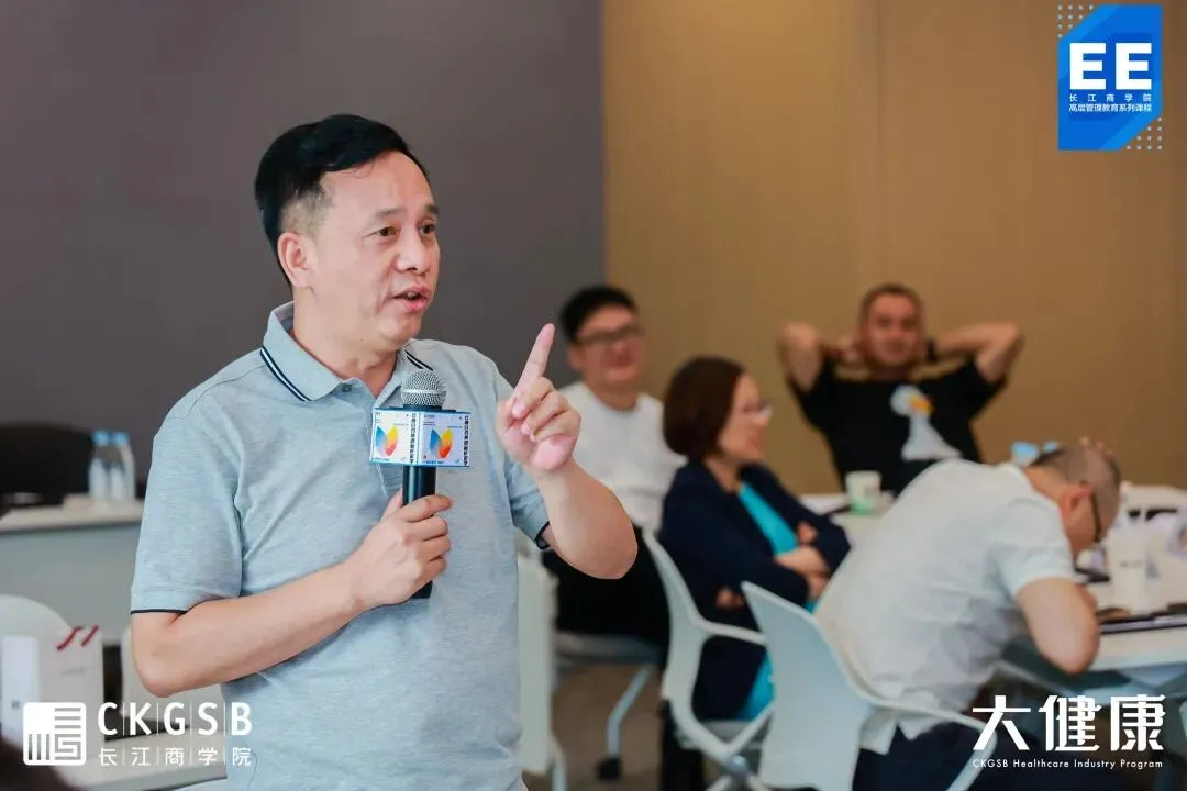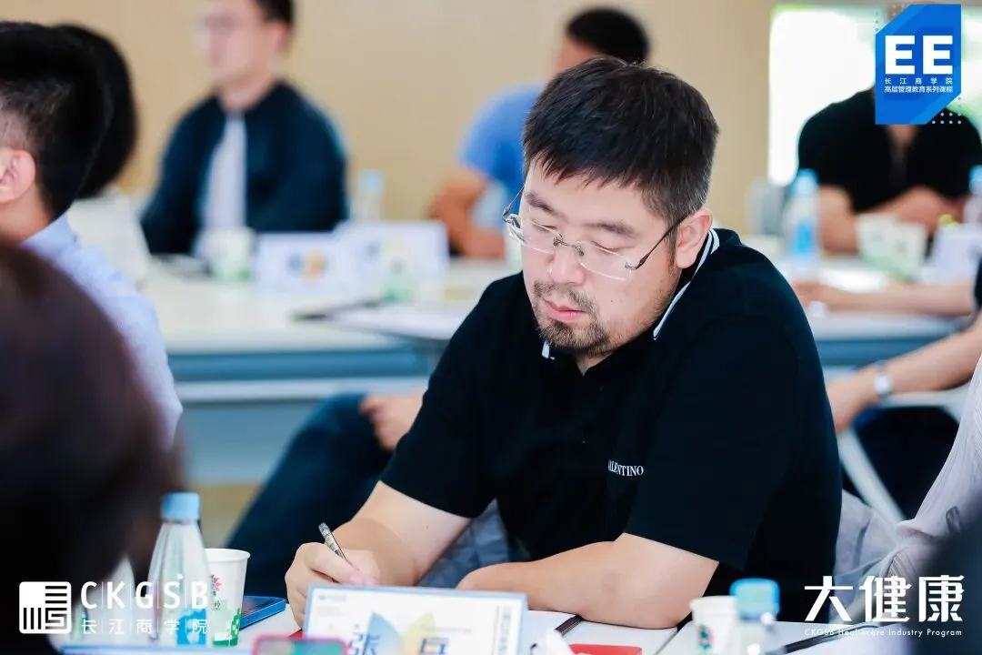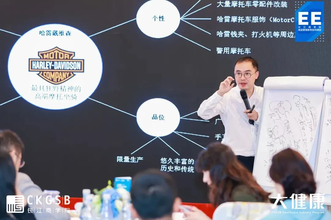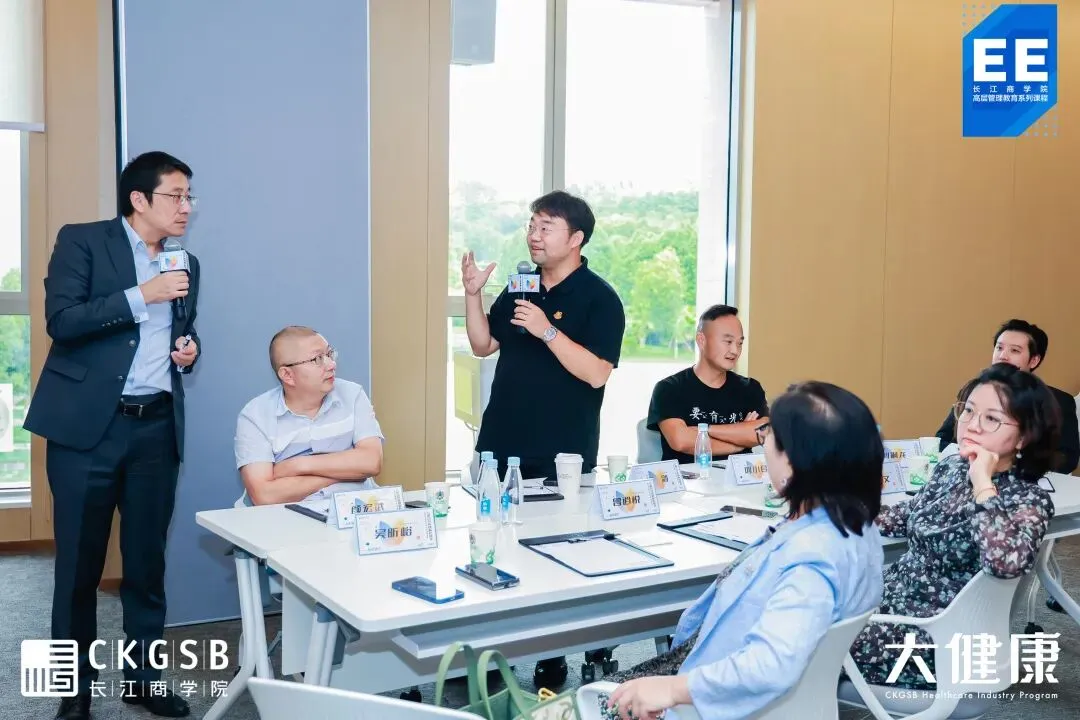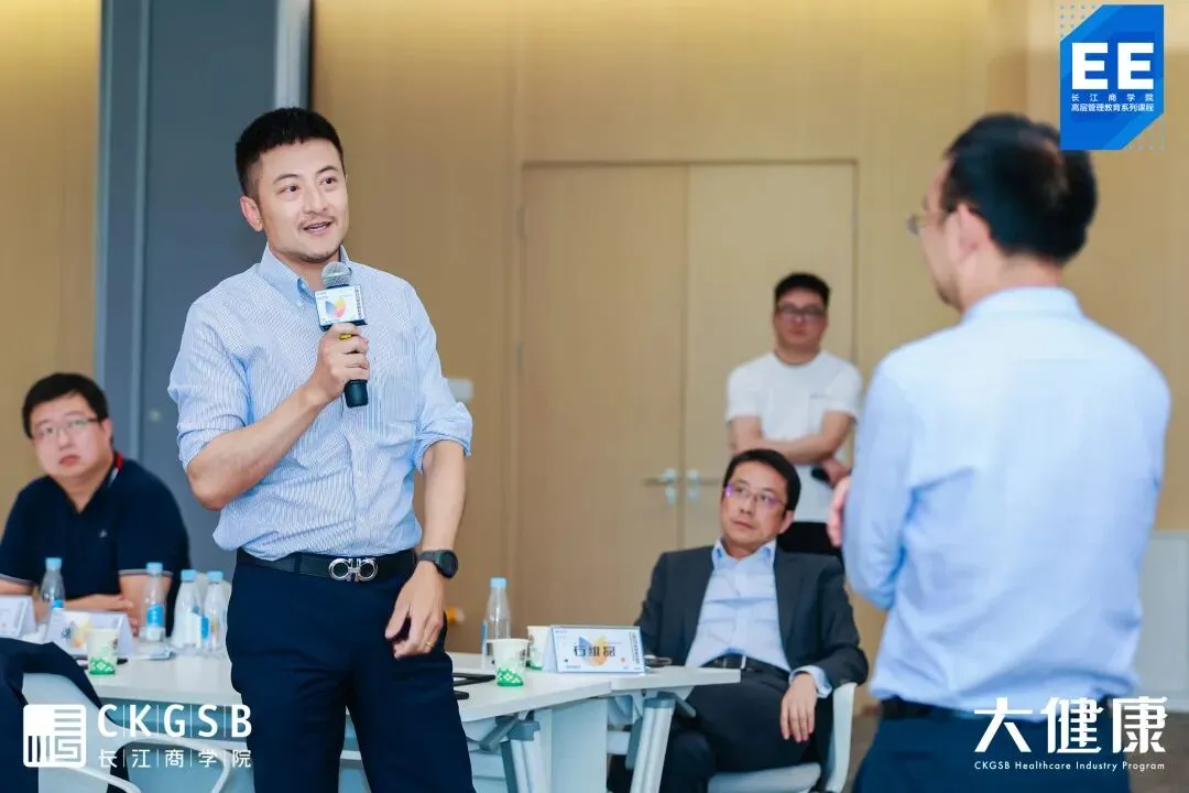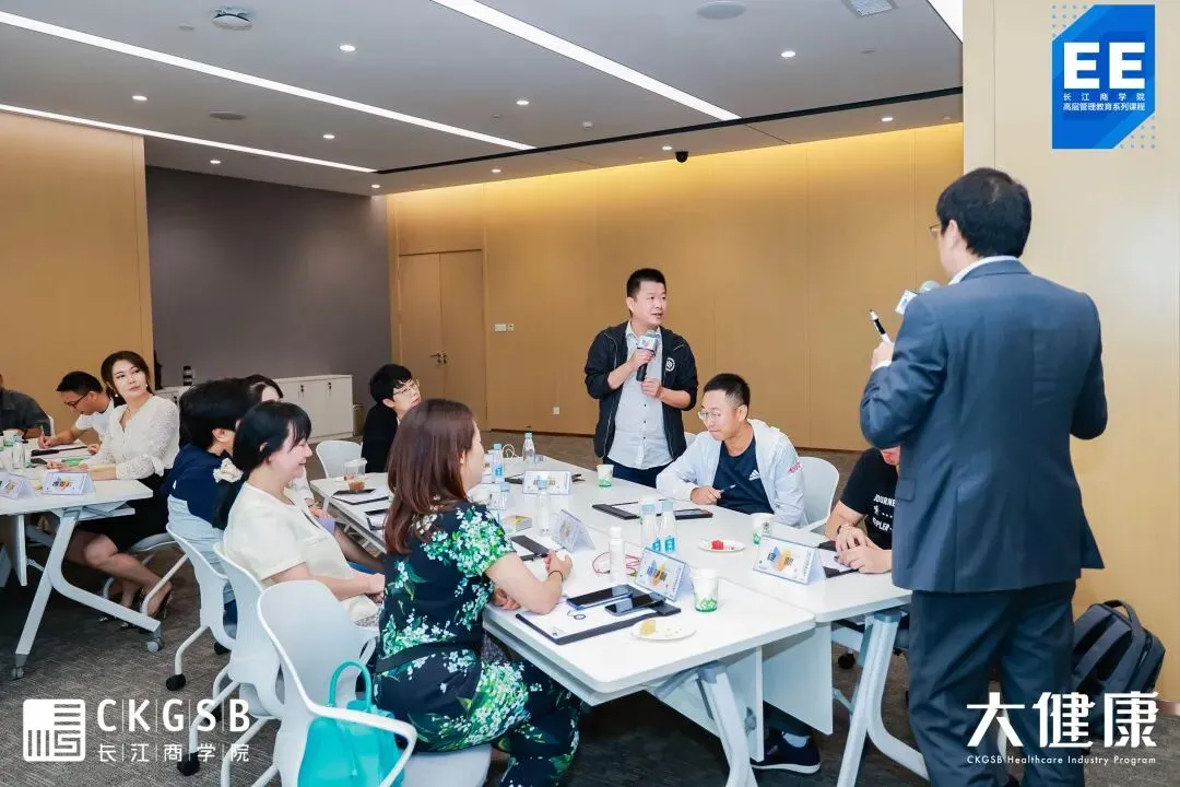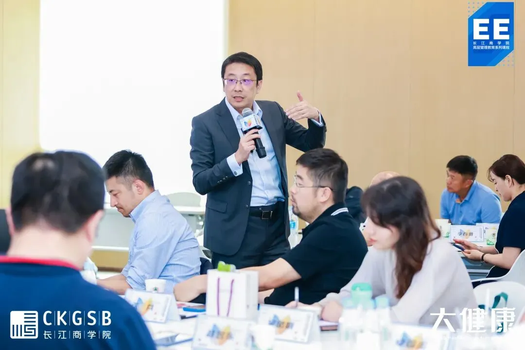 长江商学院战略管理学实践教授、匹兹堡大学Katz商学院战略管理学博士石维磊,通过共学共创的模式,和同学们一起探讨了《大健康产业中的蓝海战略》。