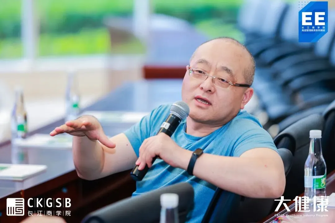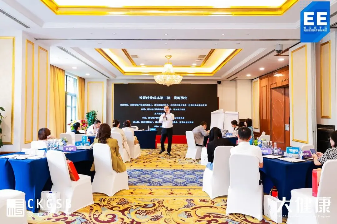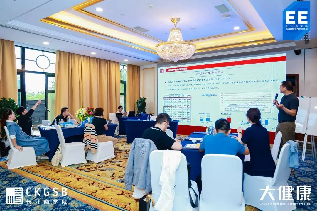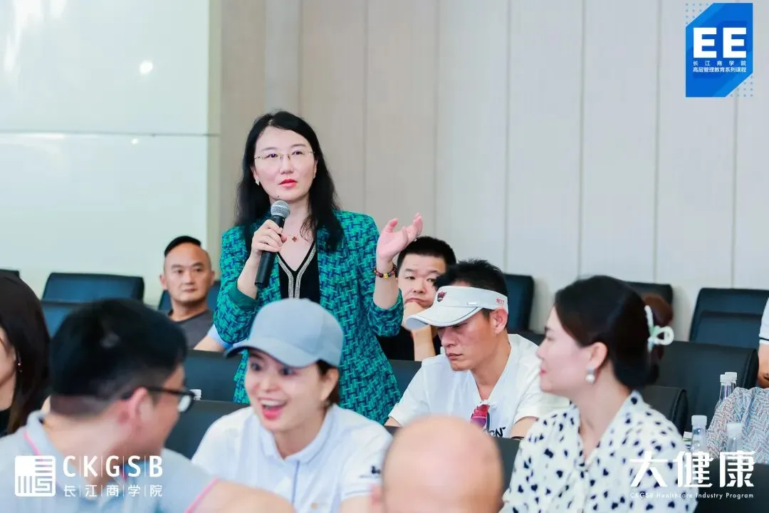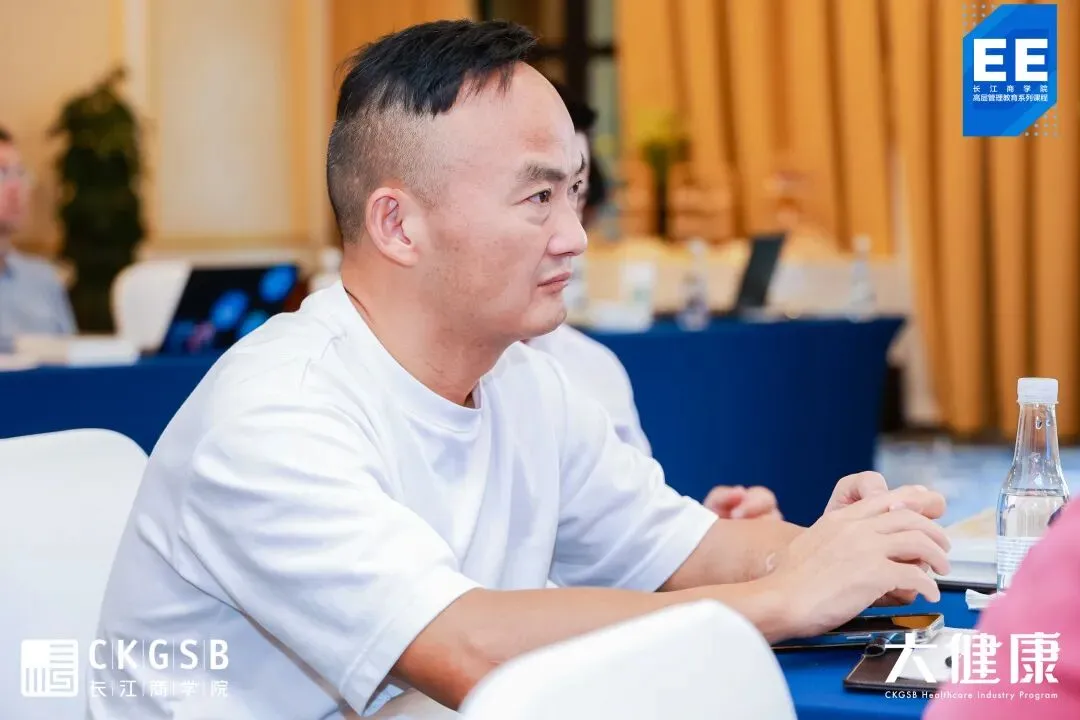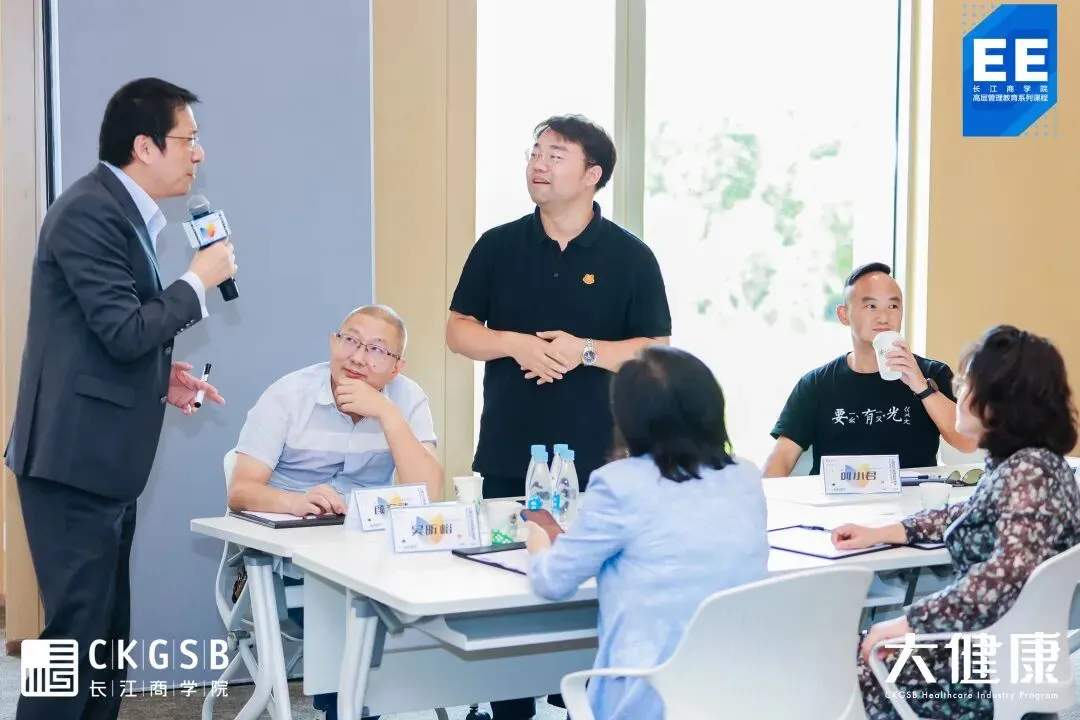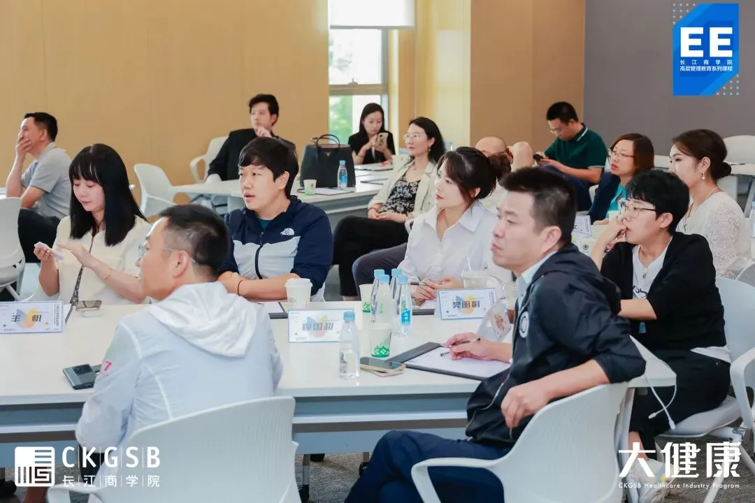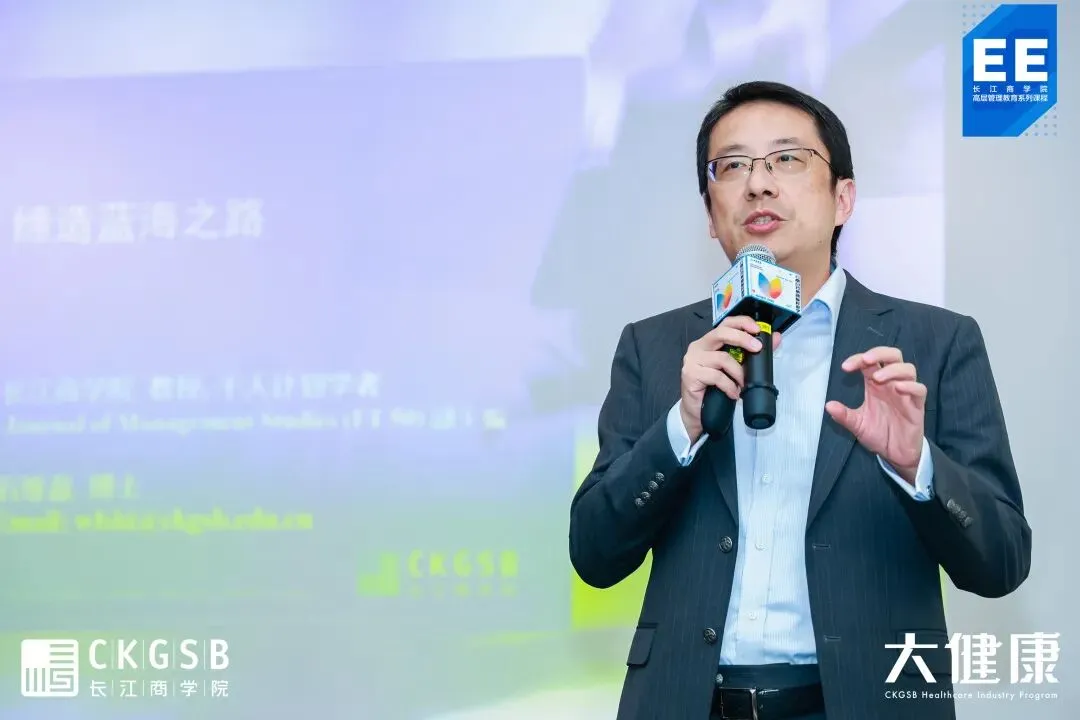长江商学院战略管理学实践教授、匹兹堡大学Katz商学院战略管理学博士石维磊,通过共学共创的模式,和同学们一起探讨了《大健康产业中的蓝海战略》。