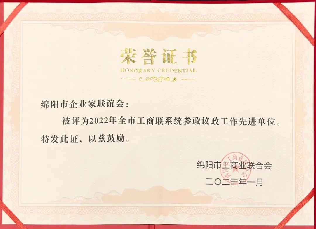 绵阳市企业家联谊会是2016年经市民政局核准登记注册的社会组织,由中共绵阳市委统战部、市工商联合会领导主管的社会团体。现有理事(会员)单位606家,以绵阳地区为主,辐射周边城市,涵盖各行各业。