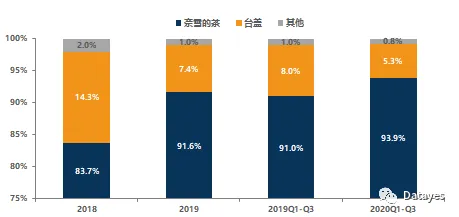 图3 奈雪的茶现制茶饮/其他产品占比