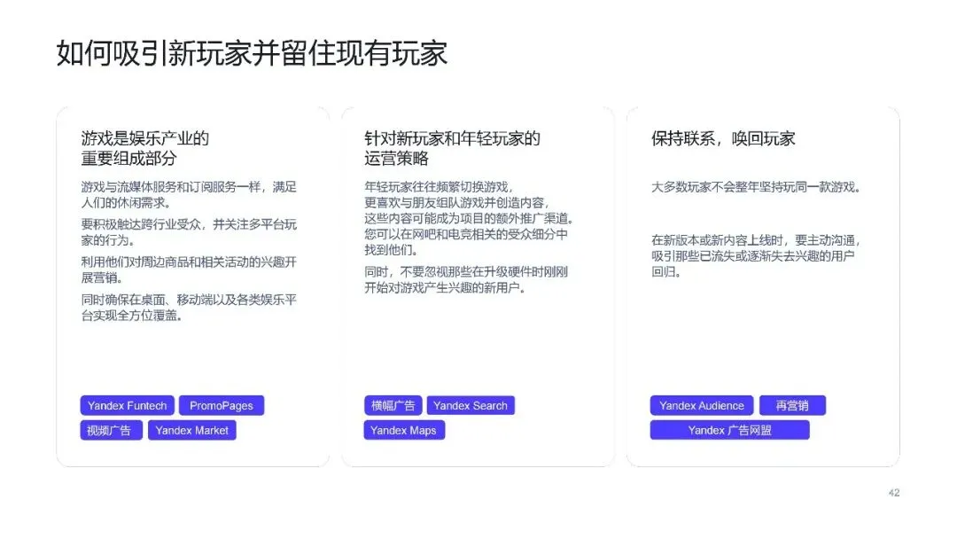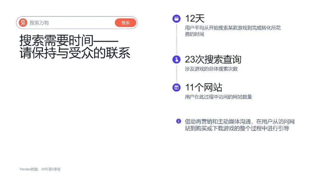 Yandex Ads 能够帮助游戏广告主,以科学的方式触达最具潜力的用户,在关键时刻建立认知,在内容节点激活回流,并在整个决策链路中保持存在。