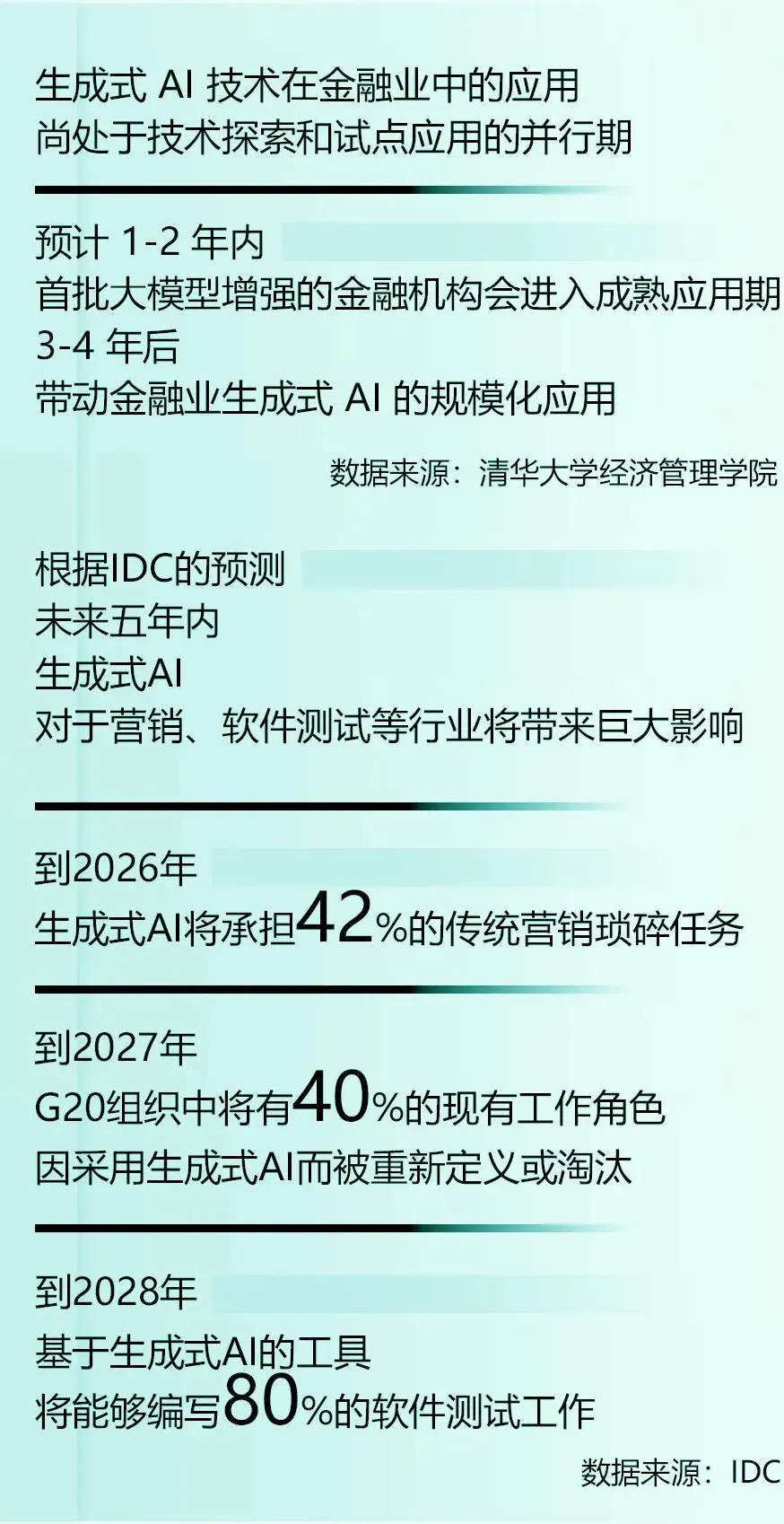 生成式AI正在赋能银行数字化转型,一些创新的银行将从“采用技术的银行”迈向“最懂技术的银行”,并向“最懂银行的先进技术服务商”领域拓展,充分释放其高质量数据价值,有望给金融业带来3万亿元规模的增量商业价值,并可能将彻底改变交易的进行、投资的管理和风险的评估方式。
