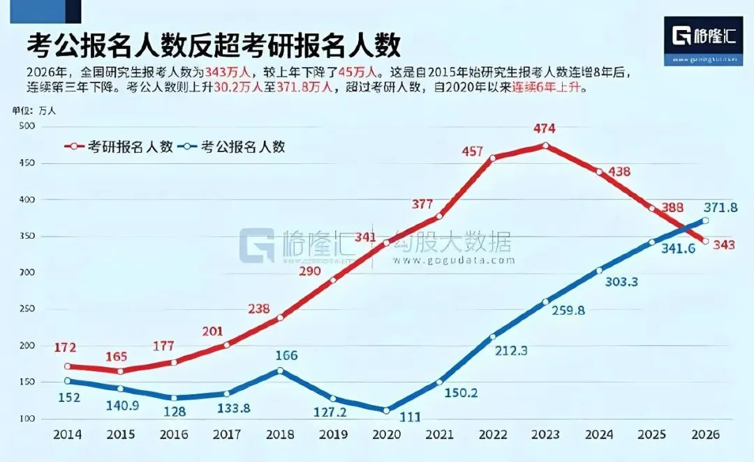 成人培训崛起。公考热压过考研。2025年国考报名突破340万,2026年预计超351万,而考研报名从2024年的438万降到343万。年轻人不再盲目 “拼学历”,而是求 “稳就业”,这让中公、华图、粉笔的公考业务成了“避风港”,但参培率下降,机构只能卷 “本地化教研”。