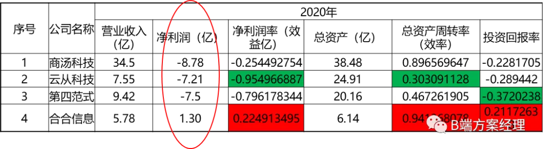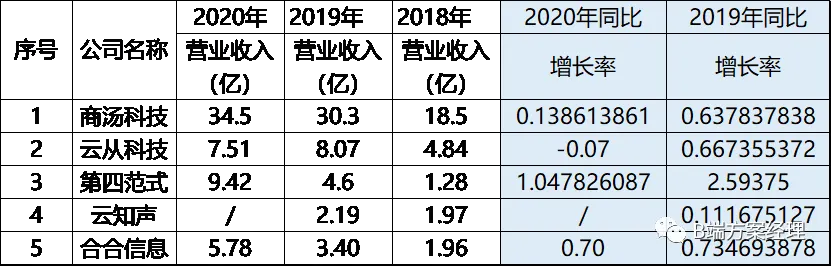再来看增长率,从18年到20年,除了第四范式和合合在保持高速增长外其他的几家公司基本处在降低甚至负增长的状态,单从增长率看差异很明显,主要和公司选择的细分赛道和盈利模式非常相关。