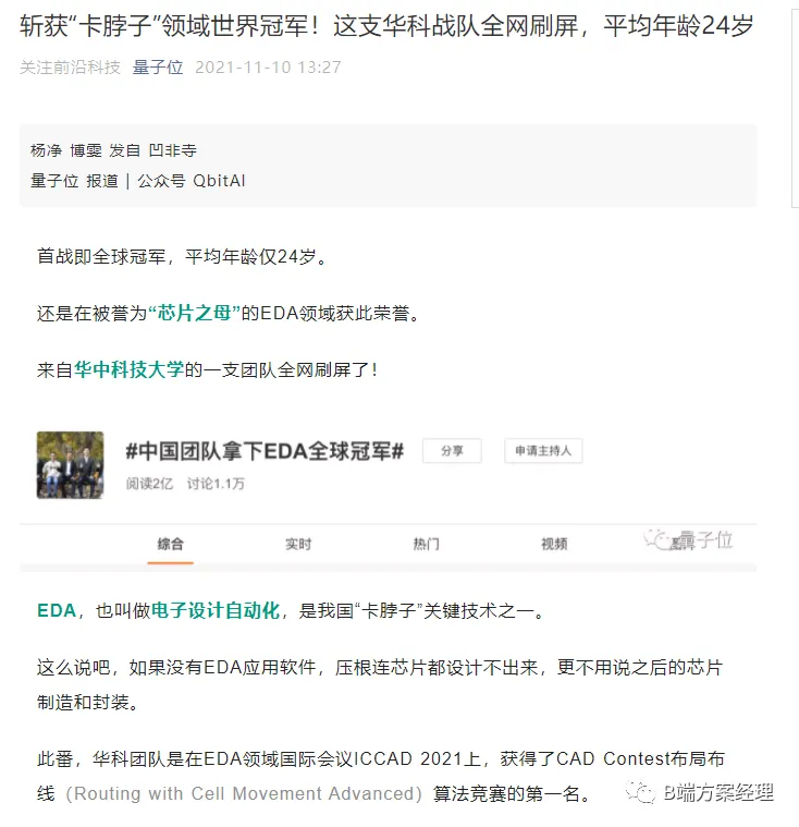 这么说吧,如果没有EDA应用软件,压根连芯片都设计不出来,更不用说之后的芯片制造和封装。华科团队是在EDA领域国际会议ICCAD 2021上,获得了CAD Contest布局布线(Routing with Cell MovementAdvanced)算法竞赛的第一名。