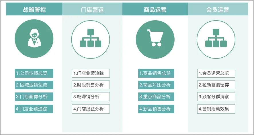 3.观远数据从茶饮企业三大核心诉求出发,通过八大产品策略,提供了针对性解决方案。