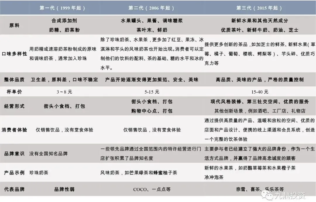 三、街头奶茶的升级换代:2010年左右,台湾塑化剂事件的曝光让奶茶的用料安全引来全国人民的关注,随着一点点进入上海,贡茶推出了奶盖茶,整个奶茶行业开始精品化,具体体现在门店的装修和产品包装,有些门店甚至出现了坐席区,原材料开始使用纯奶和原叶茶,产品和门店都得到了升级。