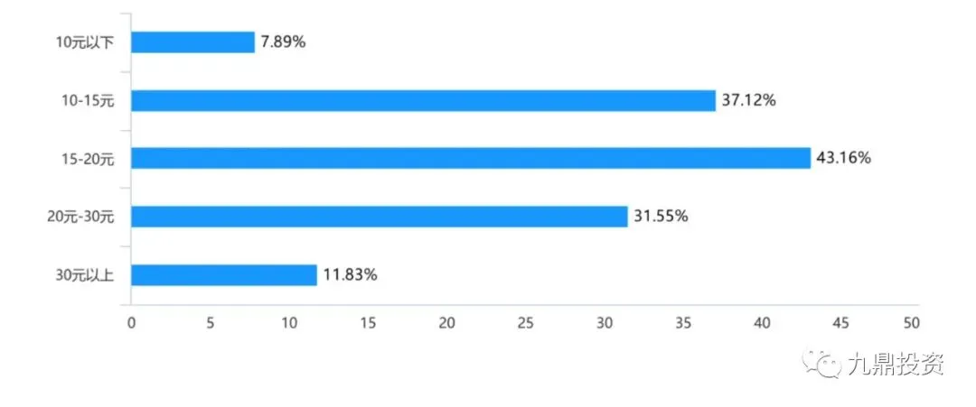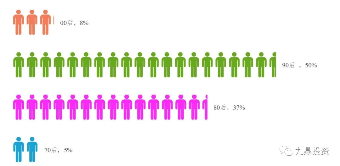 新式奶茶用户年龄以80后、90为主,占比最大的为90后,占比接近一半,80后占比为37%,00后目前时点占比相对较小,大部分00后尚未正式工作,收入有限,消费实力尚未释放。