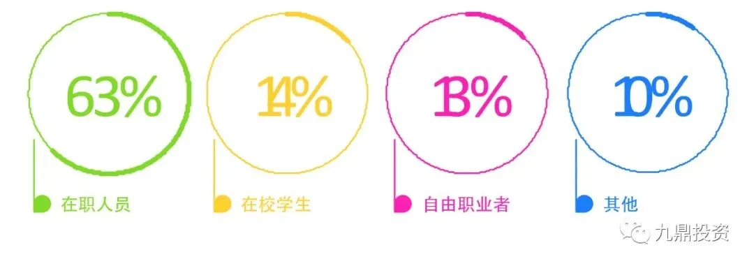 用户分布主要集中在一线及新一线城市,主要以在职人员、学生及自有职业者为主。