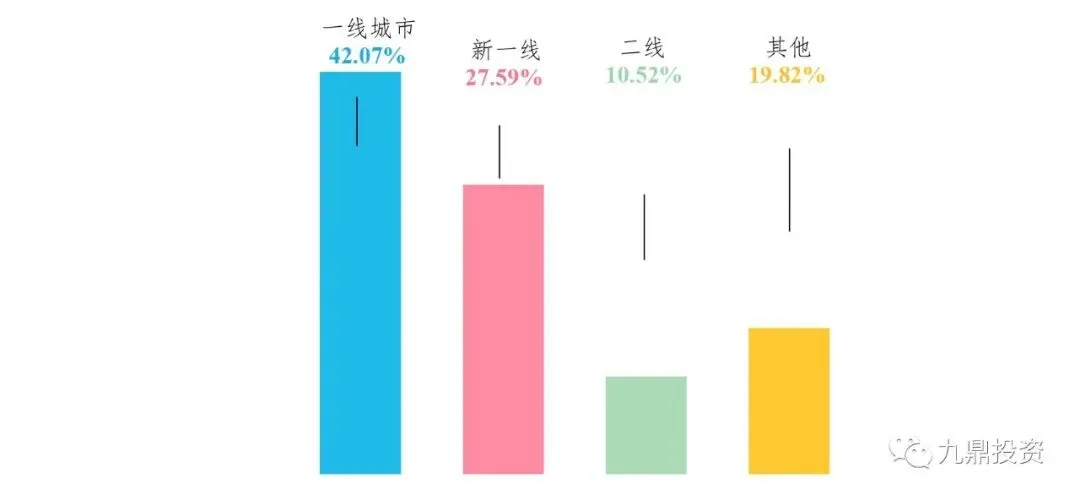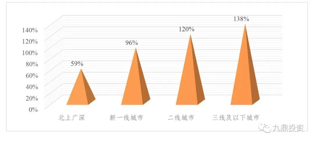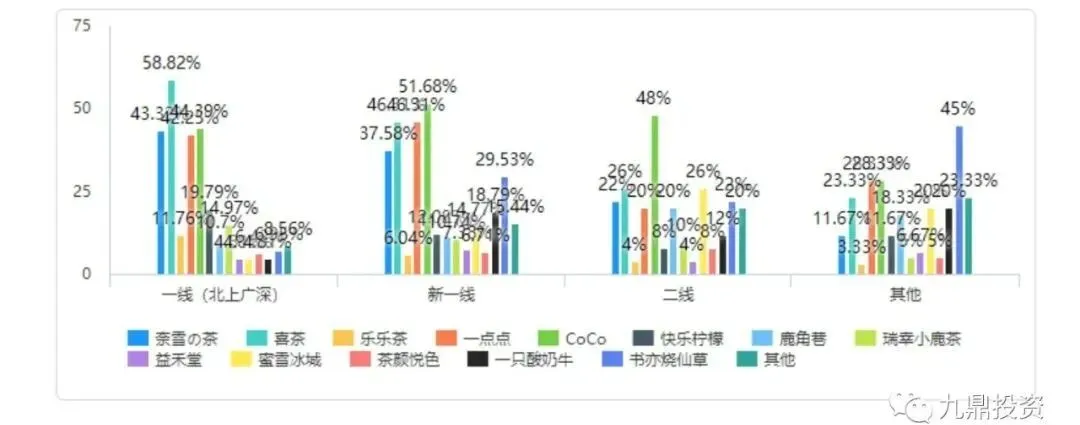 (3)一线城市渗透率已较高,低线城市渗透率低基数大,各头部品牌积极布局