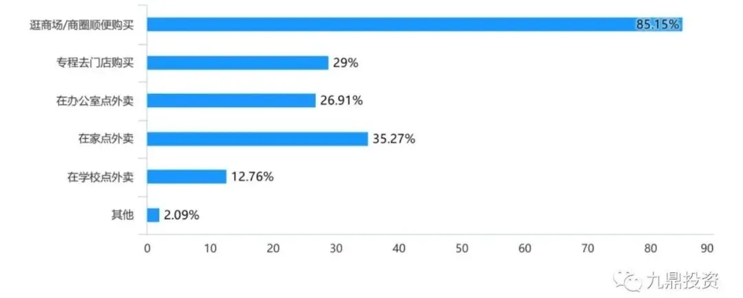 消费场景方面,大部分人为逛街顺便购买,其次是点外卖。新式茶饮的消费主要是为冲动型消费,但是目前看来由于外卖的便利性和可计划性,消费者逐渐倾向于在家或者在办公室预定外卖,头部茶饮商家的外卖比例也在逐步提升。