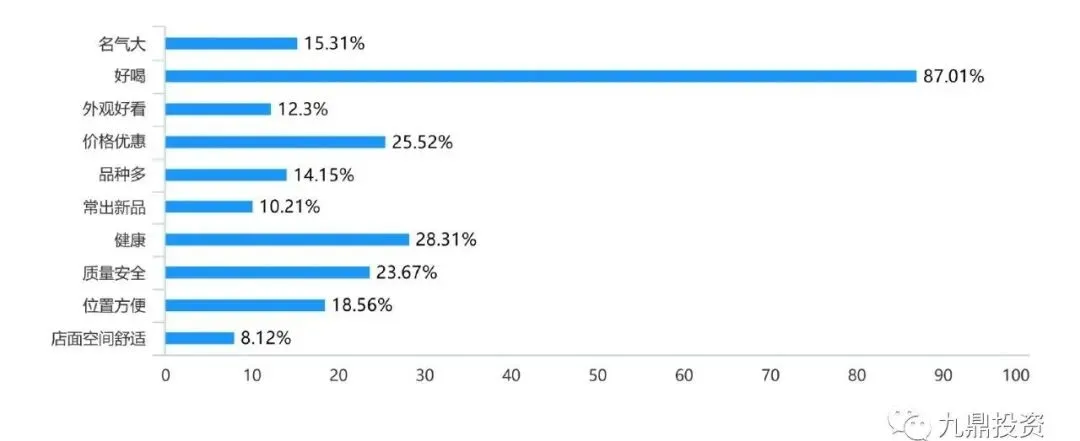消费者在选择茶饮产品时最看重的还是产品好喝,其次是健康、价格、质量、位置,茶饮本质还是回归到产品味道和成份。