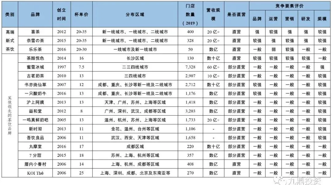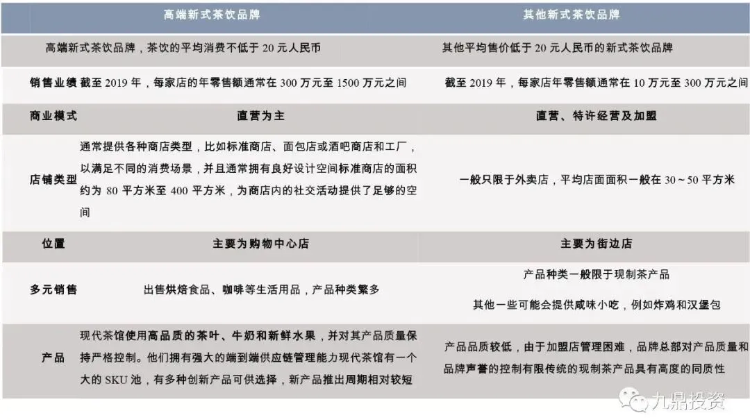 表2:高端新式茶饮品牌与其他品牌对比