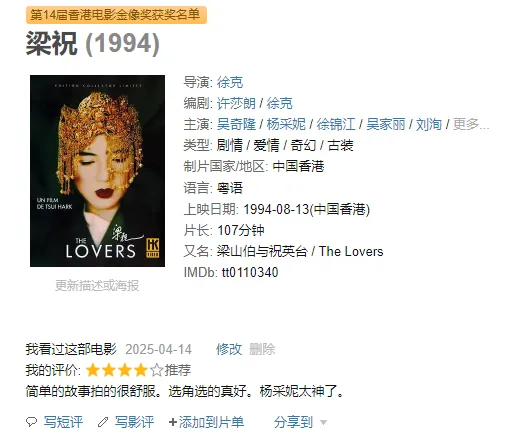 年中补了徐克的《梁祝》,就这部印象深一点。