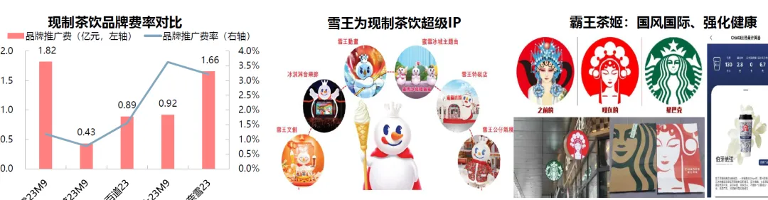 出奇制胜角度我们可见:蜜雪冰城雪王已成业内超级IP,霸王茶姬国风国际融合并强化健康升级;二者品牌塑造效果业内居前。