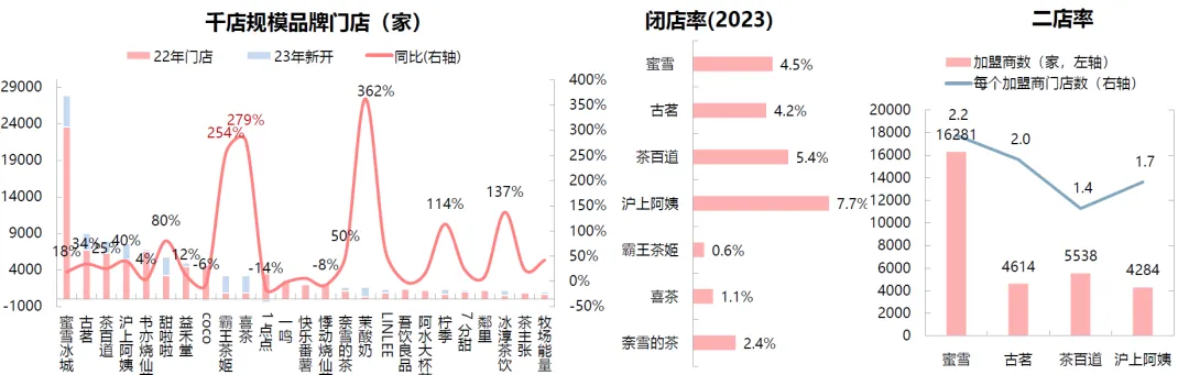 闭店:主流品牌闭店率均低<5%(沪上阿姨除外),整体数据健康。