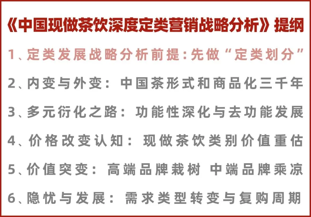 别急,咱们一个环节一个环节来。今天讲现做茶饮定类战略分析,附送中国传统茶的定类史观梳理。