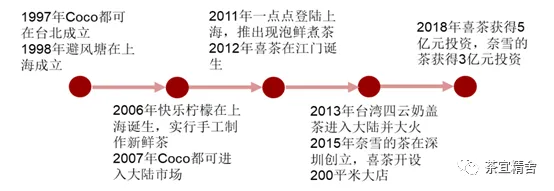 自上个世纪末从台湾传到中国大陆,中国的奶茶行业就在不断地发展壮大,如今已经成为许多年轻人生活中不可缺少的一部分。茶饮随着人们消费习惯和消费能力的变化,历经了粉末速溶奶茶、液态即饮奶茶、街头现制奶茶和新中式茶饮等多个时期的演变,新式茶饮在消费品市场的爆红,将带动整个茶饮品市场向新纪元迈进。1、国内现制茶饮品的发展历程