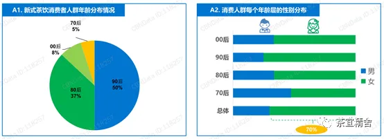 根据消费者调研数据,90后消费者(21-30岁)已成为新式茶饮主流消费人群,占整体消费者数量的50%,而80后消费者占比37%。从性别分布来看,新式茶饮的女性消费者占据总体的七成,并且女性消费者在各年龄层的占比中均占主导地位。