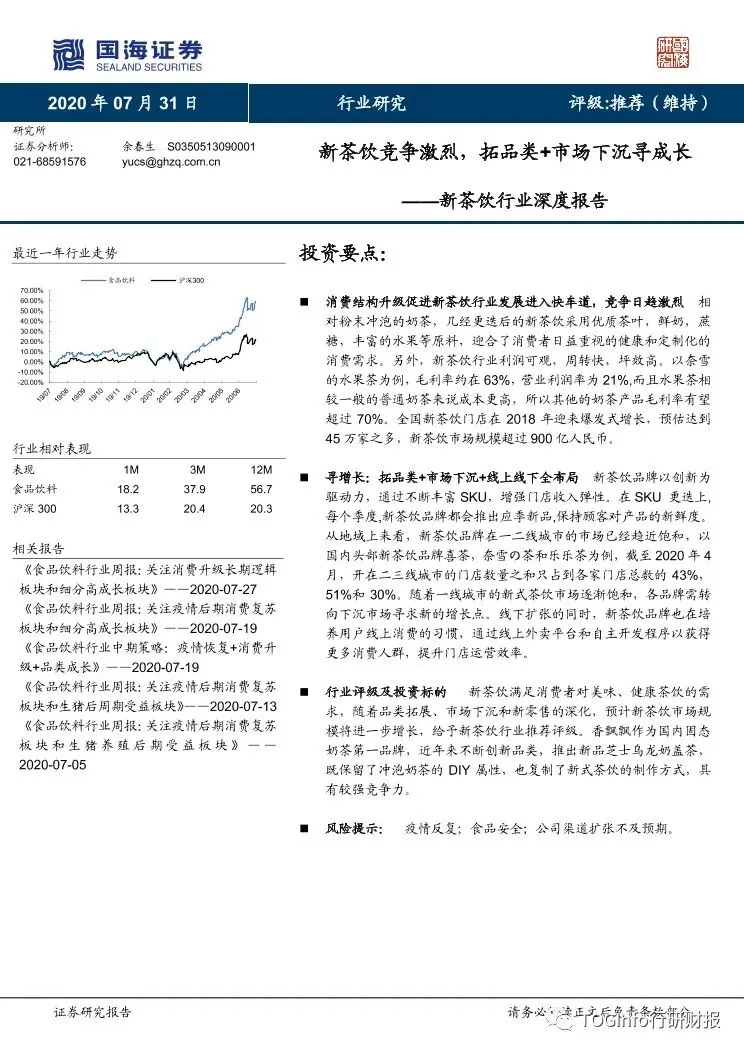 【国海证券】新茶饮行业深度报告:新茶饮竞争激烈,拓品类+市场下沉寻成长