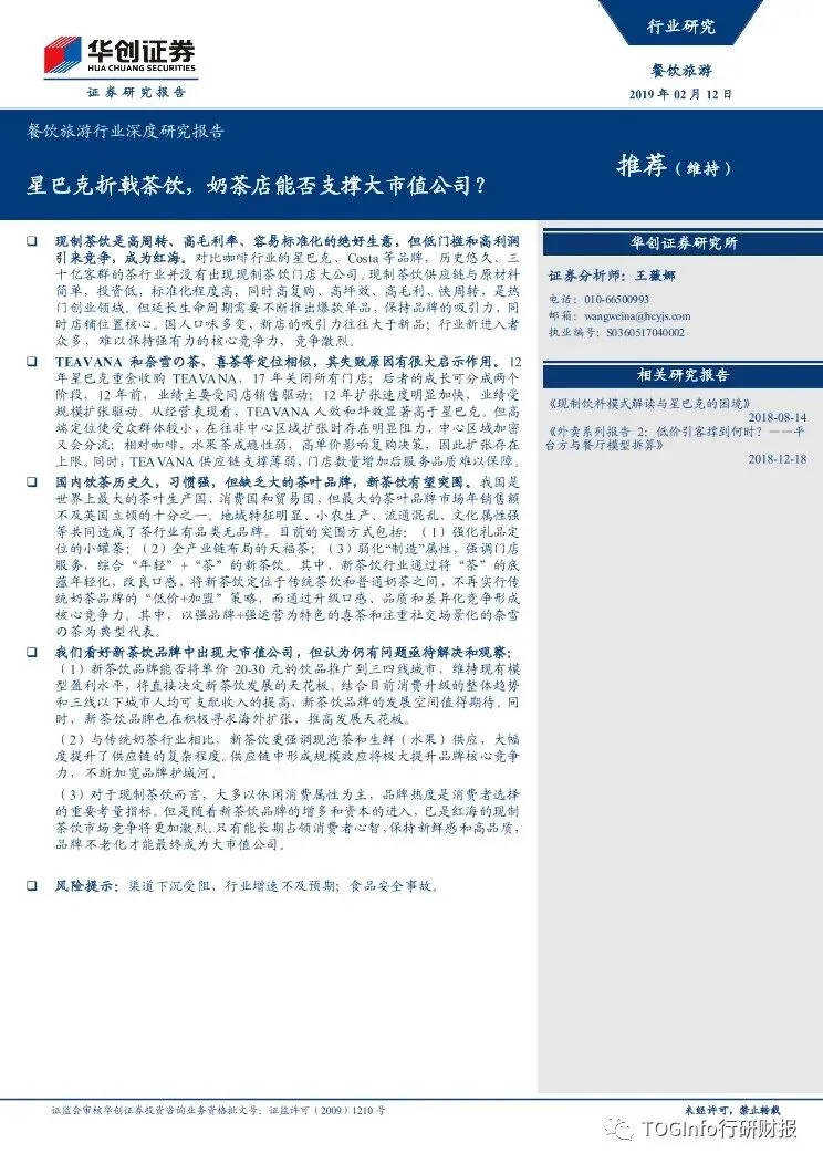 【华创证券】餐饮旅游行业深度研究报告:星巴克折戟茶饮,奶茶店能否支撑大市值公司