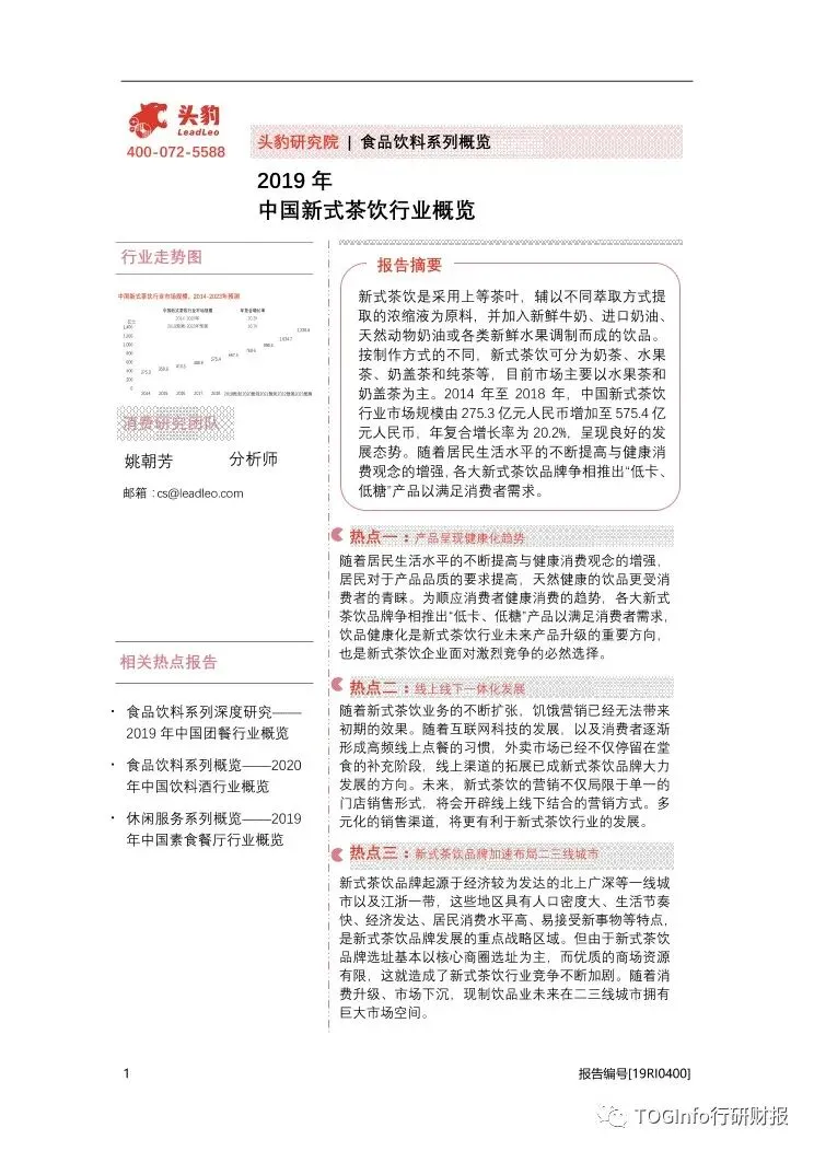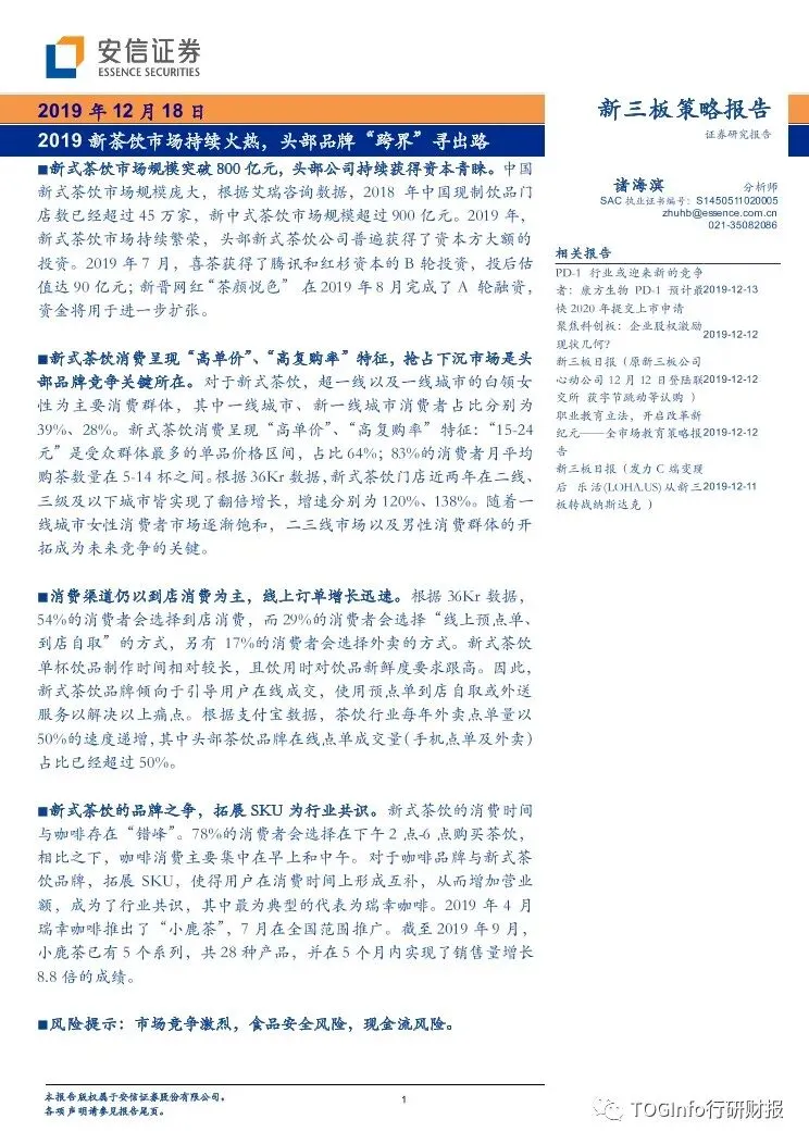 【安信证券】2019新茶饮市场持续火热,头部品牌“跨界”寻出路