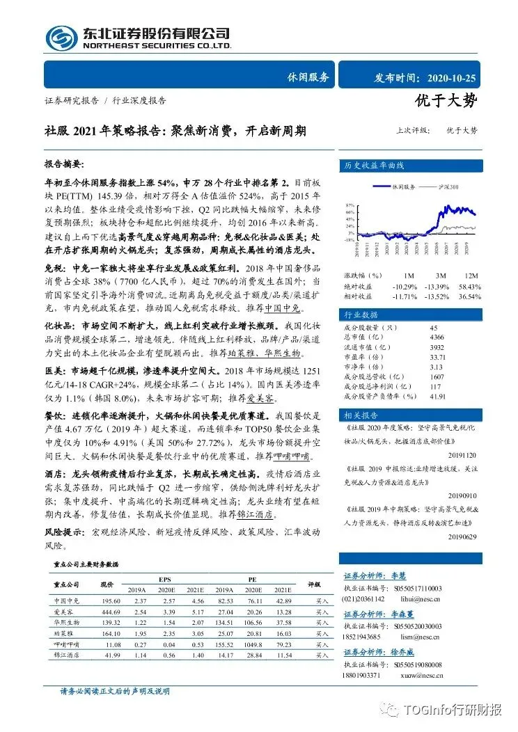【东北证券】休闲服务行业社服2021年投资策略:聚焦新消费、开启新周期
