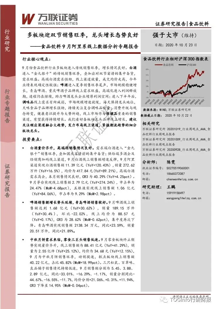 【万联证券】食品饮料行业9月阿里系线上数据分析专题报告:多板块迎双节销售旺季,龙头增长态势良好