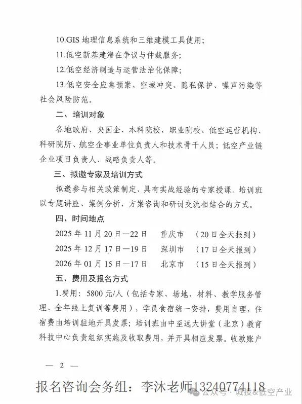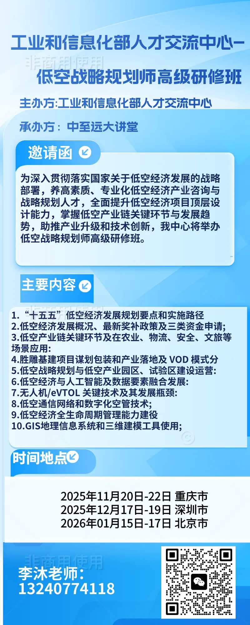 | 3 | *新质生产力背景下“低空经济”基础设施建设运营及产业发展应用高级培训班【会员课程】 | |