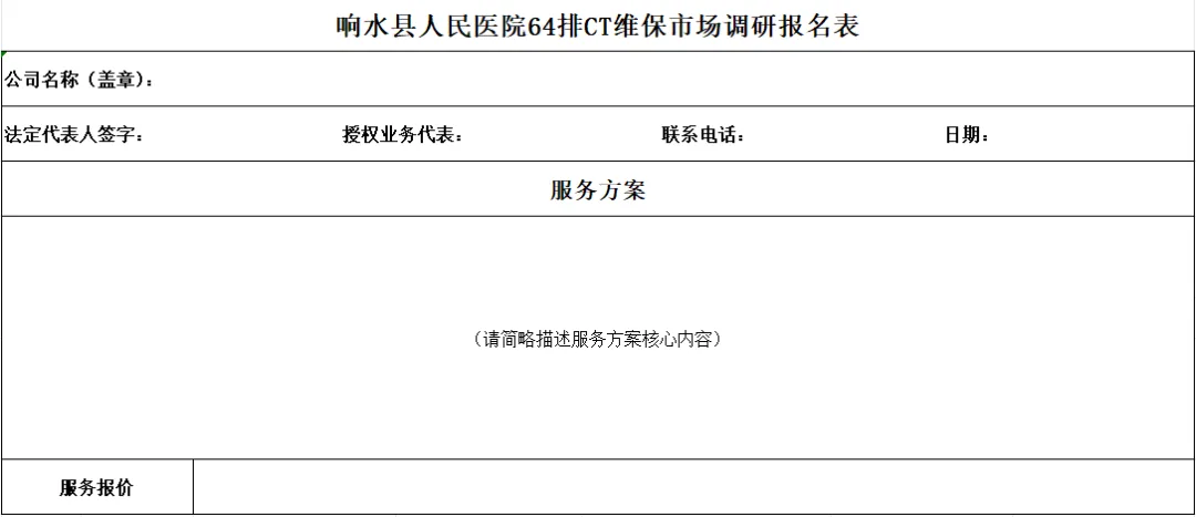 响水县人民医院64排CT维保市场调研公告