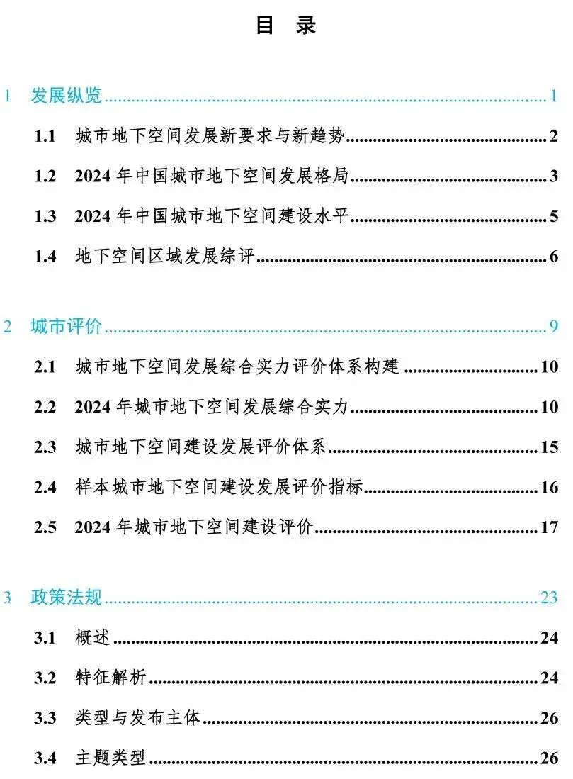 《2025中国城市地下空间发展蓝皮书》根据中国城市地下空间开发利用的新形势和新要求,基于2024年城市地下空间发展的基础数据,全景式展示了中国城市地下空间发展的水平和态势,从政策法规、行业市场、科研交流、防灾减灾等不同维度为未来城市地下空间发展指明方向,为城市高质量发展注入新动能。