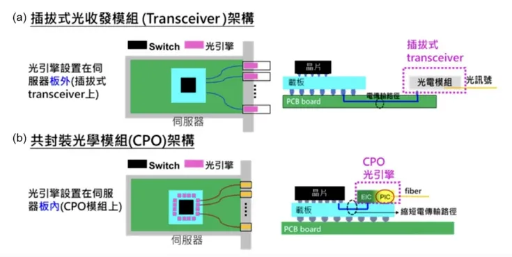 系统优势与新应用:透过异质整合,系统级性能可以超越传统单晶SoC的极限。一方面,提高良率降低成本:许多晶片分成小块制造,比起单颗大晶片更容易生产而不良率较低。另一方面,IP重用提升研发效率:厂商可以预先设计并验证好标准化的chiplet模组(如AI加速单元、IO介面单元等),在不同产品中重复组合使用,缩短开发时程。对AI而言,这意味着可以更快速地迭代硬体架构以适配新的演算法需求。例如,某AI加速器可藉由更换其中的存储chiplet或运算chiplet,迅速推出升级版本,无需从头重新设计整颗SoC。再者,异质整合还促进跨领域技术融合,如将光学元件与电子晶片封装在一起形成矽光子(Silicon Photonics)系统,用于高速光通讯连接AI数据中心。目前已有晶片将雷射光收发器与网路交换晶片以2.5D整合,达到每秒数百Tb的资料传输能力,被视为未来AI云端中共封装光学(CPO)的雏形。最后,异质整合对边缘AI与嵌入式HPC也带来影响。例如先进封装使得高性能AI晶片可以以模组化方式嵌入车用或物联网装置中,同时封装内集成异种感测器、记忆体,以满足即时运算需求。总的来说,异质整合已成为AI/HPC时代突破晶片性能天花板的关键技术之一,不仅提升了现有系统的效能功耗比,也开启了晶片设计与应用的新范式。