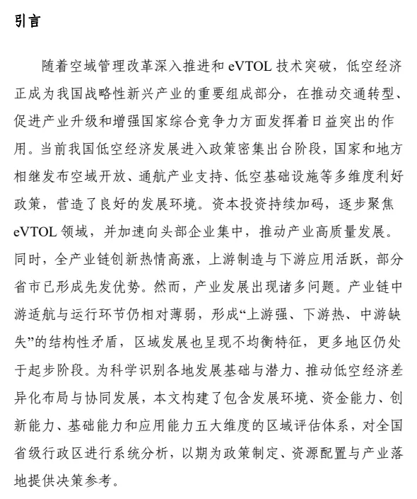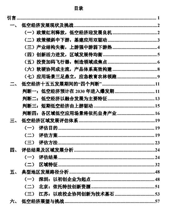 《低空经济发展趋势与路径研究报告》深入剖析了我国低空经济的发展现状、提出对未来发展的四大判断,并建立评价指标体系分析各区域特点与差异,最后选三个最具代表的城市进行发展模式分析,希望为低空经济的长期发展提供参考。