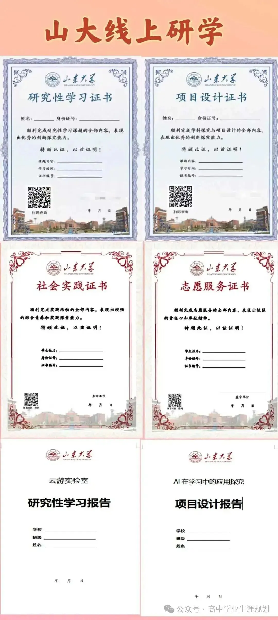 山东大学研究性学习证书——四证两报告
