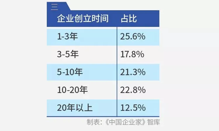 从企业持续经营时间来看,成立10年以内的企业占64.7%,10-20年的占22.8%,20年以上的占到12.5%。