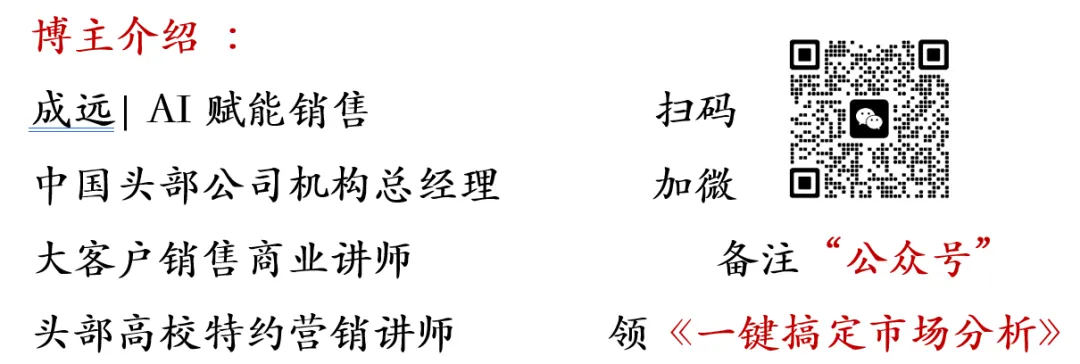 告诉AI你是什么样的公司、什么样的产品,以及你想做什么样的市场,让AI先给你出一个调研提纲。为什么让他出?因为你自己可能不知道要调研哪些内容和维度,很多时候我们销售人员是不清楚的,那就听专业的AI呗。 用AI把第一步生成的内容整理成最优化的提示词。AI第一步生成的内容往往很多,但是不一定到位,所以优化处理形成专业提示词很有必要 执行优化后提示词。将AI生成的提示词重新输入,让它执行。你就会得到一份非常详细的调研报告,其中包含数据、趋势、行动建议、竞争对手分析、市场规模等信息。这份报告可能长达好几页,有几百甚至几千字,将所有内容完整地罗列在一个文档里。这样,你在1分钟之内就能拿到一份完整的报告,谁不喜欢呢?