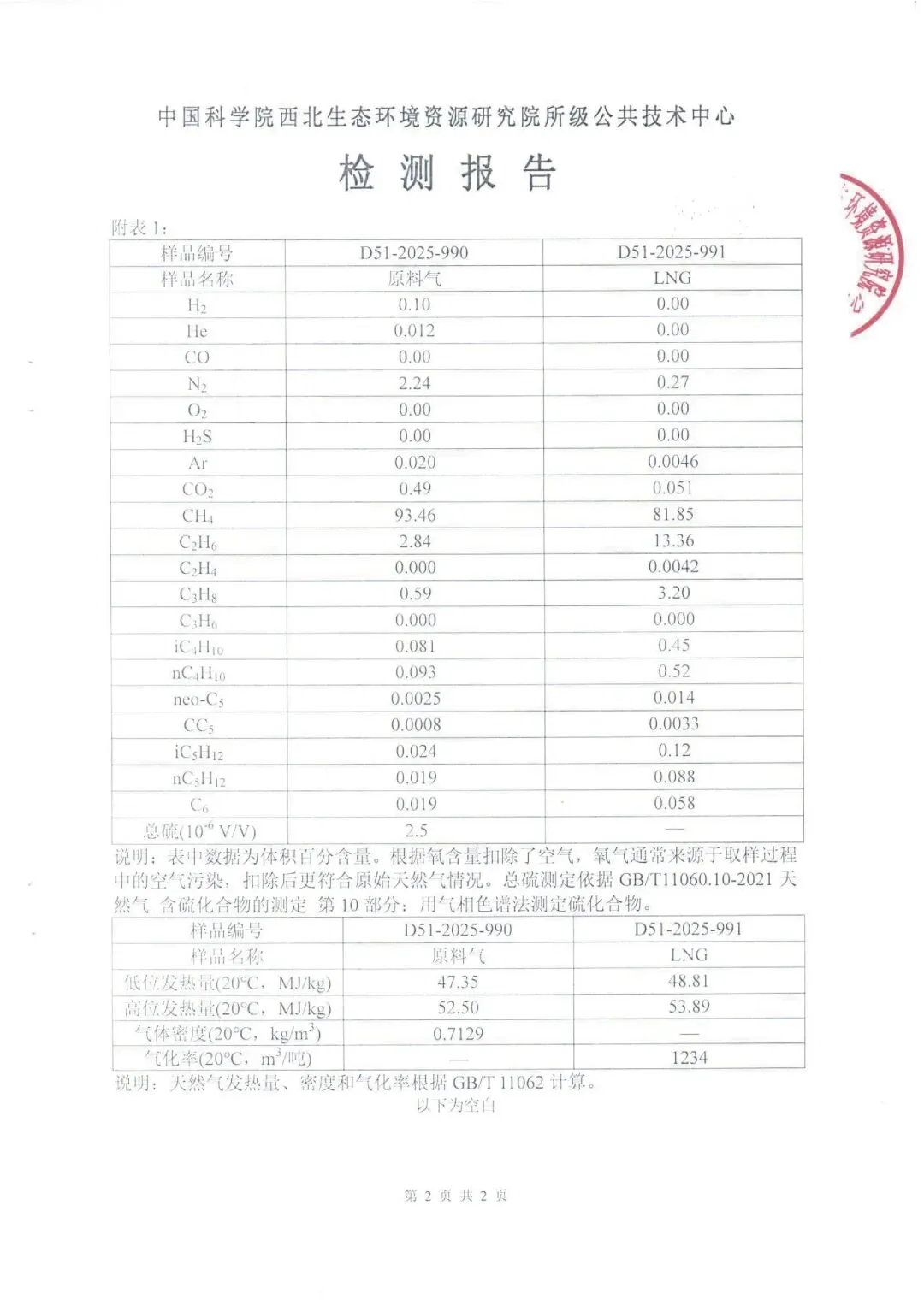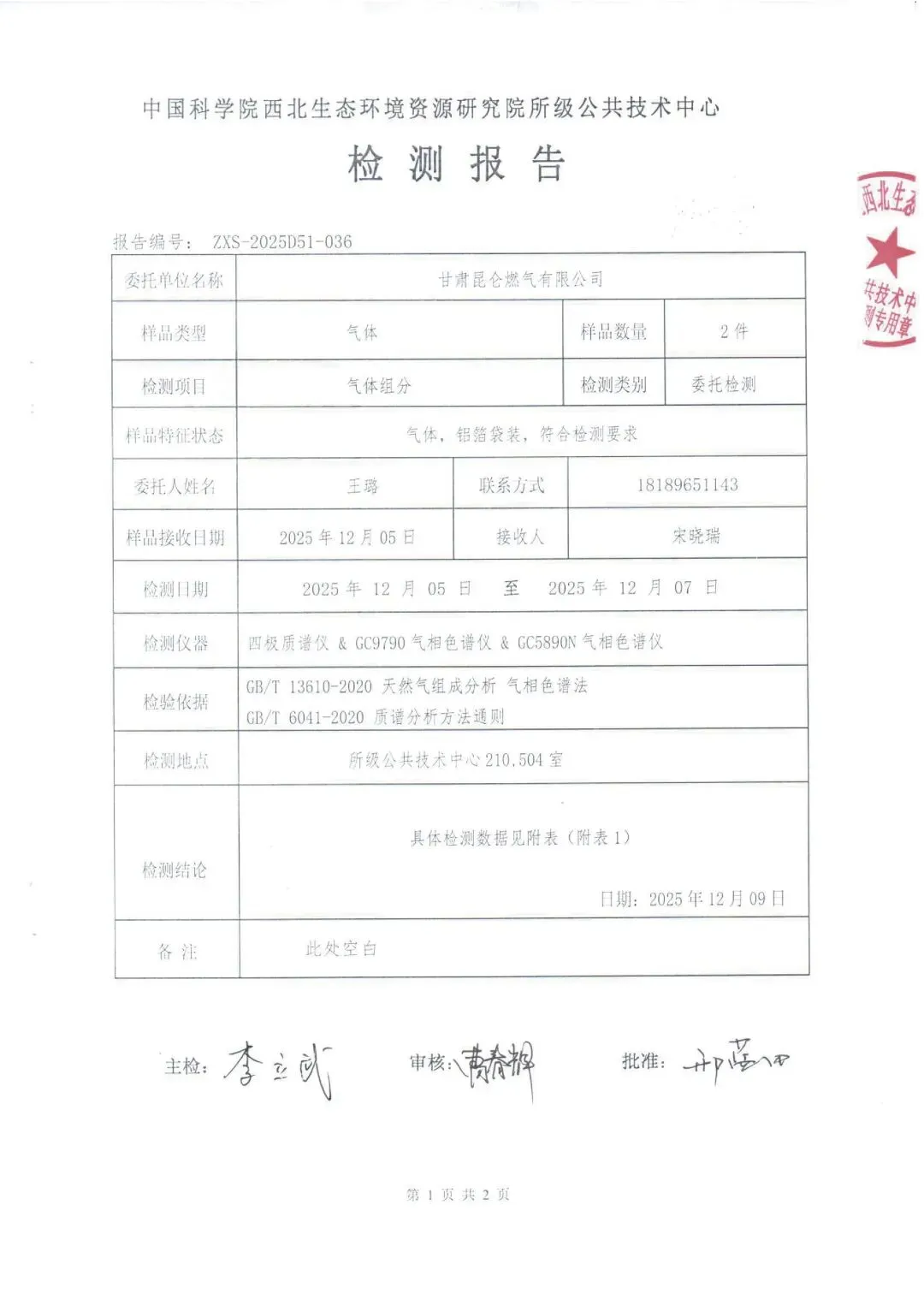 甘肃昆仑燃气有限公司2025年气质检测报告