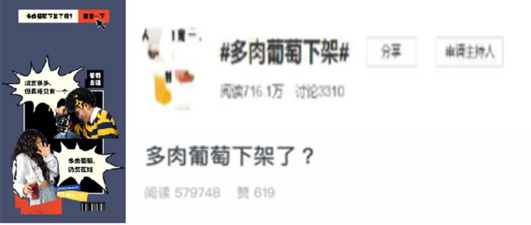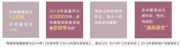 “喜茶”于2018年8月首推出“多肉葡萄”。这款产品以“整颗果肉”的果茶概念,扎实饱满的用料与口感,经过一段时间的用户口碑积累,俘获了消费者的喜爱。如何将已是明星产品的“多肉葡萄”作进一步的提升与突破,是品牌需要思考与解决的现实问题。