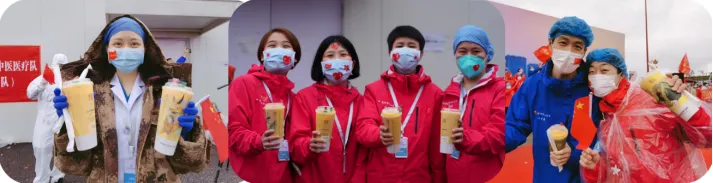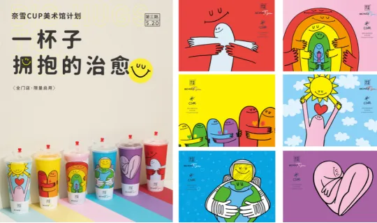 除了此次推出的六只“瑞兽杯”之外,我们还开发了与之密切相关的周边衍生产品。互相拥抱才能温暖彼此。2020年3月底,“新冠”疫情援鄂医疗队互相告别。在告别仪式现场,“奈雪”武汉门店的员工与现场志愿者为在场的数千名医护人员送上了“奈雪”的茶饮,希望用暖心的茶饮为奋战一线的医护人员加油打气。拿到“奈雪”的医护人员,纷纷拍照合影,与身边“战友”碰杯纪念这一难忘的时刻。5月20日,“奈雪CUP美术馆计划”第三期“一杯子拥抱的治愈”活动启动,六只抱抱杯在C端实现多场景融合。有“奈雪”,有温暖。