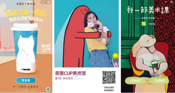 2019年8月8日是“国际猫咪日”,为了把艺术的美好带给更多人,奈雪CUPSEUM(奈雪CUP美术馆)2019年首展揭幕仪式——“Being A Cat”主题派对在“奈雪的茶”欢乐海岸店举行。奈雪CUP美术馆是“奈雪的茶”推出艺术战略,以与艺术家合作的方式,在茶饮杯上呈现不同主题的艺术展,希望把每个饮品杯都打造成一幅独立的、流动的、可留存的艺术作品,将艺术融入日常,为都市生活带来有品质感的产品。首期奈雪CUP美术馆推出了六只可爱的猫咪杯,并提出“拟猫化”的概念,希望消费者在品尝茶饮的同时注意到杯子上可爱的小猫咪,感受到治愈与放松。据统计,奈雪CUP美术馆首展约触达1000万人次。奈雪CUP美术馆活动“奈雪的茶×Cinyee新春瑞兽好运展”,祝福消费者手握奈雪,开启未来十年好运。