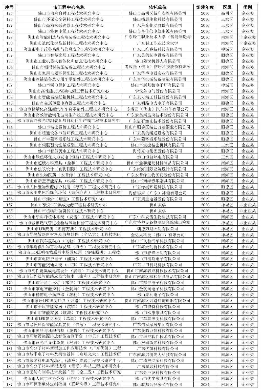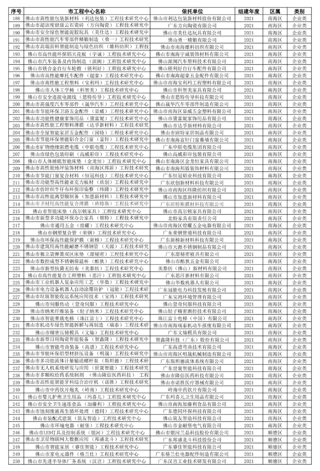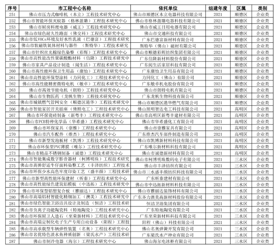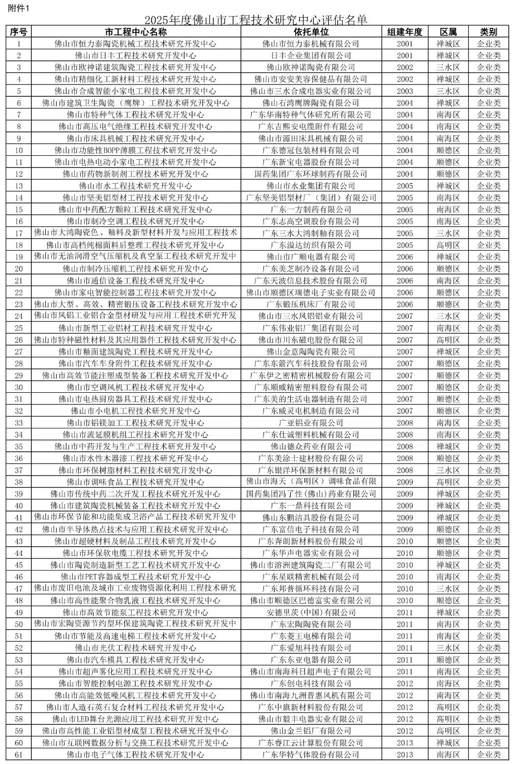 附件1:2025年度佛山市工程技术研究中心评估名单(共287家)