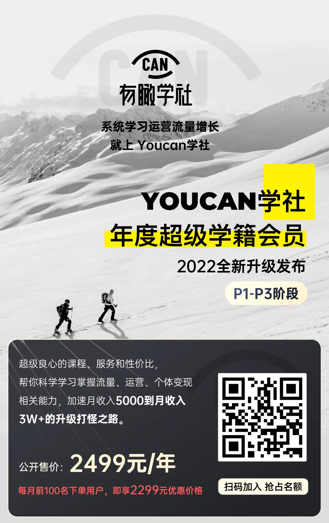 原版更为详细的案例分析文档,会发送至「Youcan超级学籍会员」专属社群,各位超级学籍会员们可免费获取。非会员的读者朋友,欢迎扫描下方二维码,加入「Youcan超级学籍会员」,获取更多价值干货。