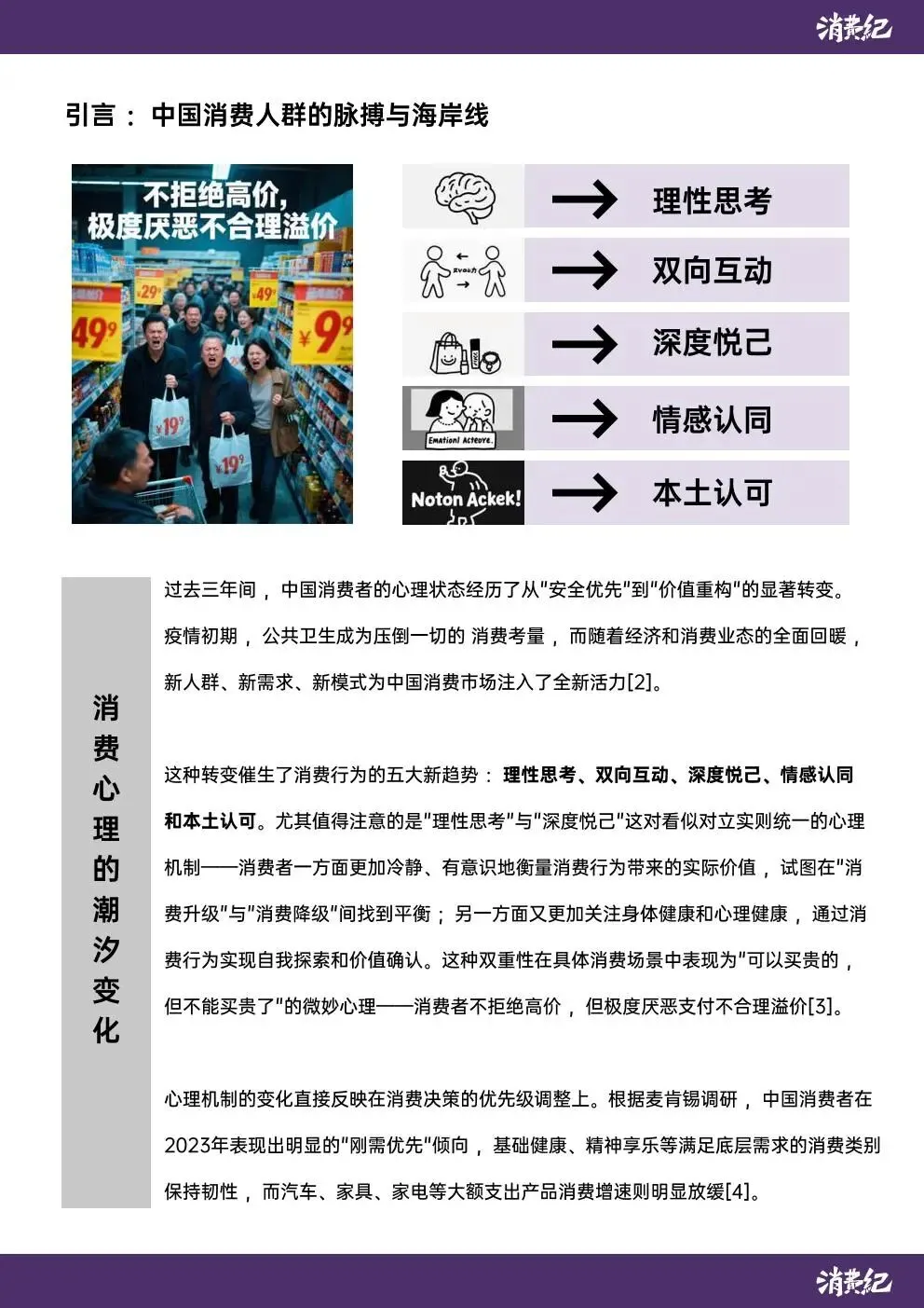 《中国消费人群心智地图与品牌未来战略白皮书》指出,中国消费者正在“理性消费”与“情感消费”之间找到微妙平衡。一方面,消费者越来越精打细算,重视“质价比”,追求耐用性和实用性;另一方面,他们又愿意为情绪价值和文化认同支付溢价。这种看似矛盾的消费行为背后,折射出物质丰裕时代下人们对生活意义的重新定义。